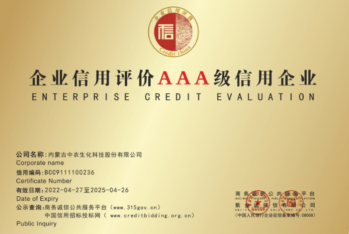企業(yè)信用等級AAA證書